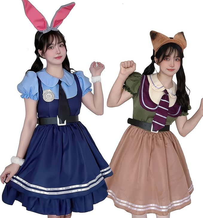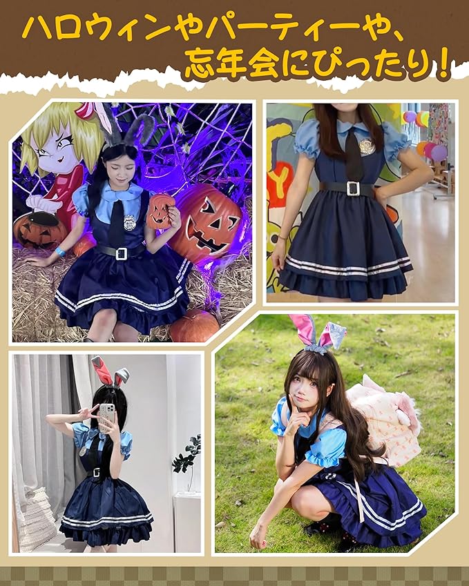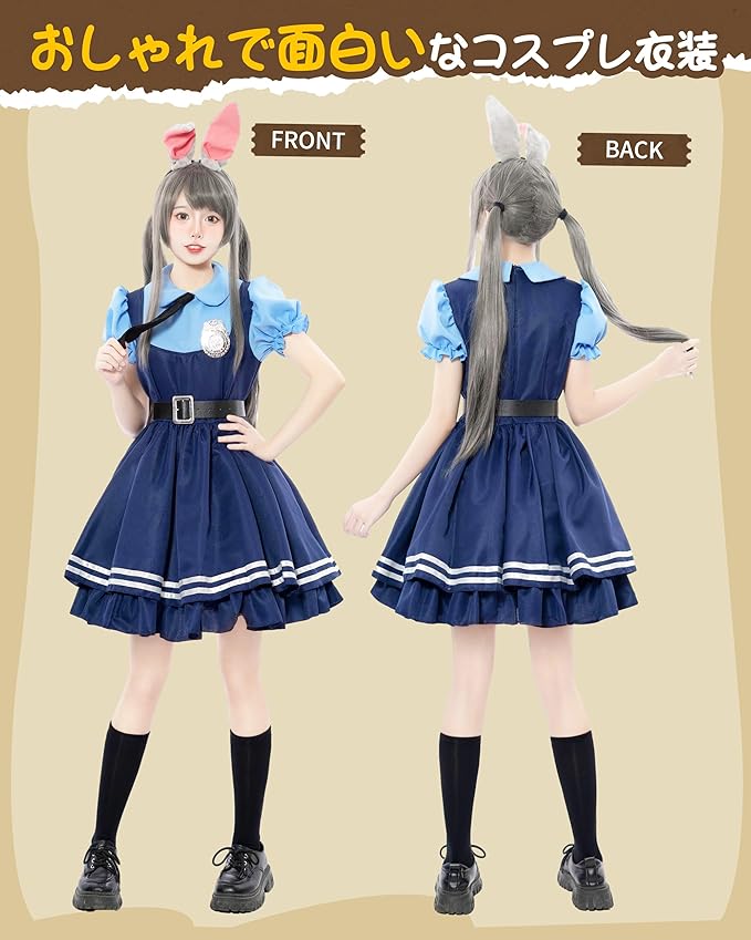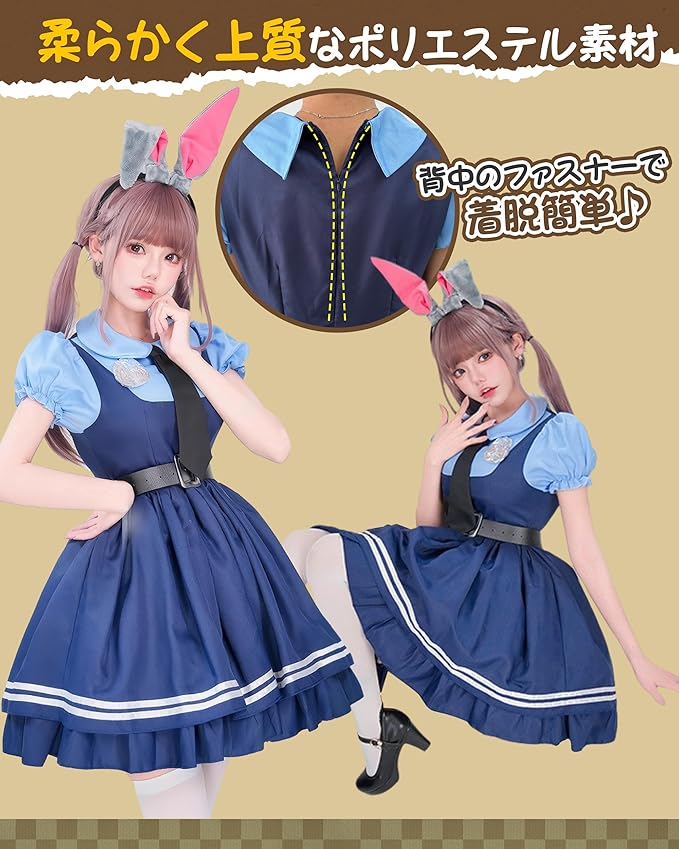 [CHALAN] ウサギ警察 ハロウィン コスプレ 衣装 【5点セット ワンピース カチューシャ ネクタイ ベルト ワッペン】 レディース ハロウィーン 大人用 うさ耳 仮装 コスチューム ロリータ クリスマス かわいい ポリス 女性用 警察官 婦警 イベント アニメ 動物cosplay