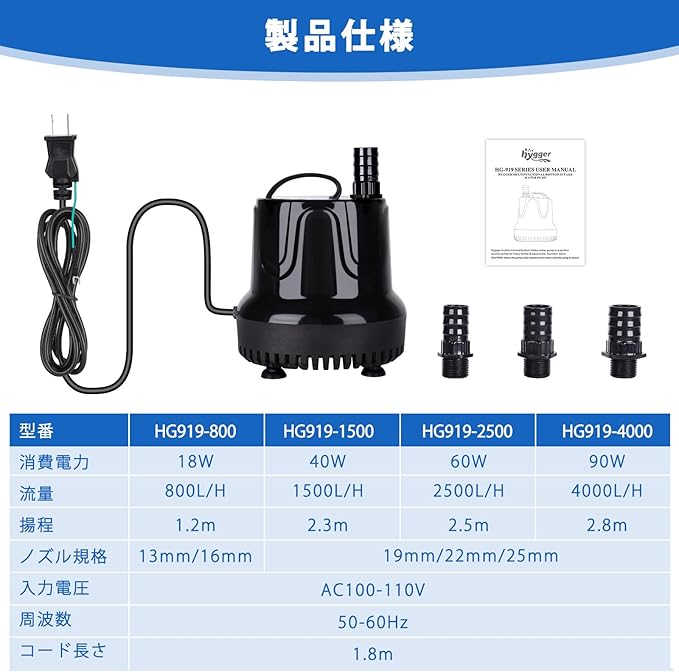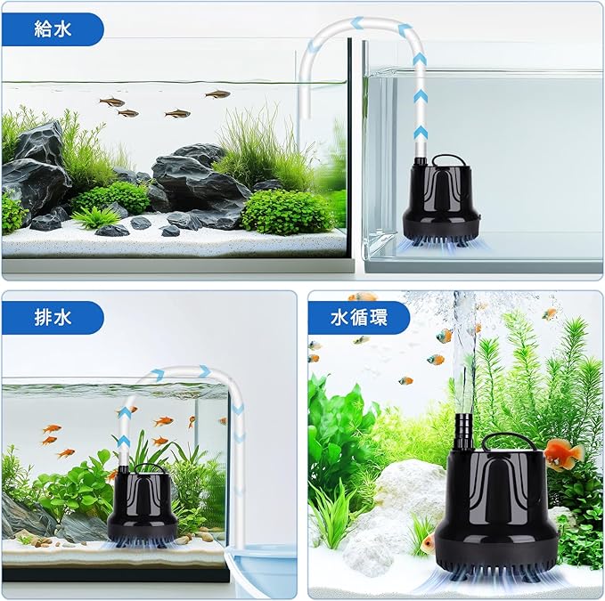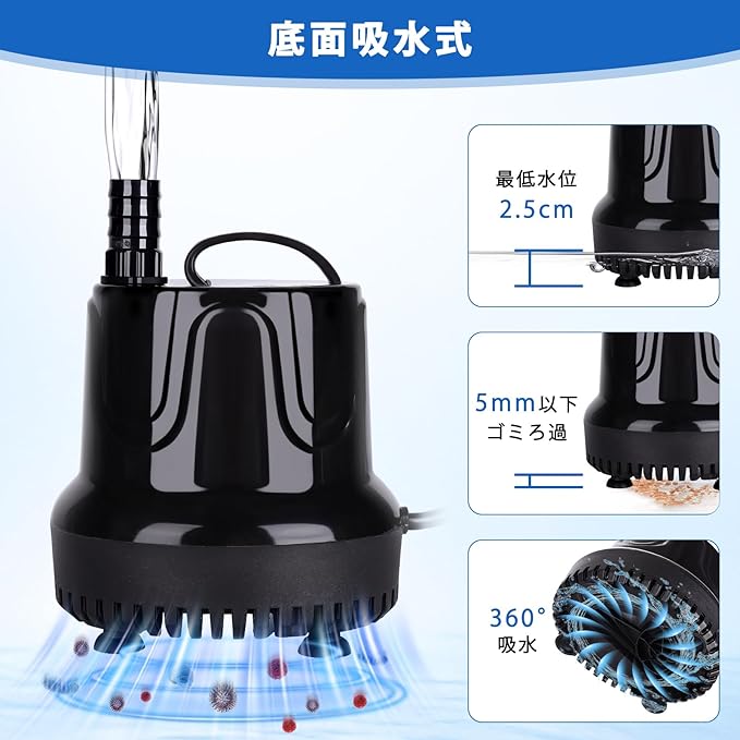 hygger 水中ポンプ 水槽 吐出量2500L/H 最大揚程2.5M 給水 水換え 底部入水式 静音設計 排水ポンプ 循環ポンプ 給水ポンプ 淡水 海水