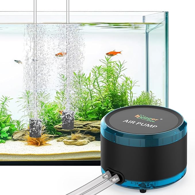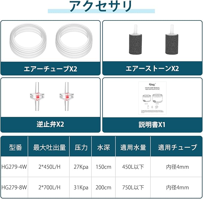 hygger 水槽エアーポンプ 強力 450L/H 静音 2口 酸素ポンプ エア量調節可能 エアレーション 450L以下水槽 4mmチューブ対応 水深150cm以下 防振防水 海水・淡水両用 省エネ 設置簡単 4W