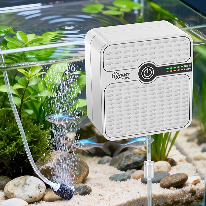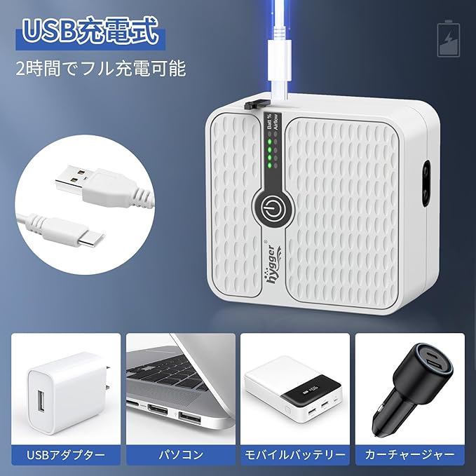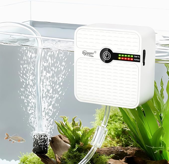 hygger エアーポンプ 釣り 充電式 最大2.5L/min USB充電 連続/間欠モード ぶくぶく 静音30dB 小型 軽量 持ち運びも簡単