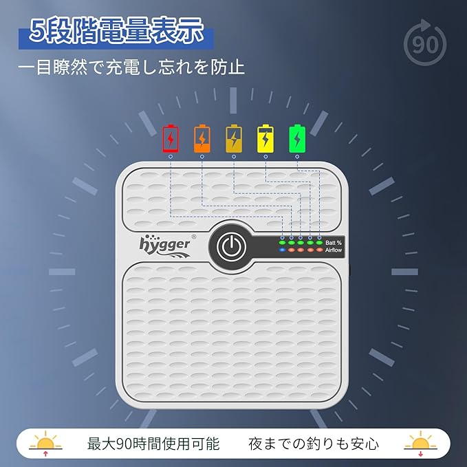 【連続45H/間欠90H】4段階出力調整機能付きの酸素ポンプが便利です。連続モードでは約21-45H、間欠モードでは約44-90H使用が可能なので、長時間の釣行でも安心です。USB充電式なので、USBで接続してスマートフォンのように充電して使用できます。4つのランプが電量を表示してくれるので、充電し忘れを防止できます。