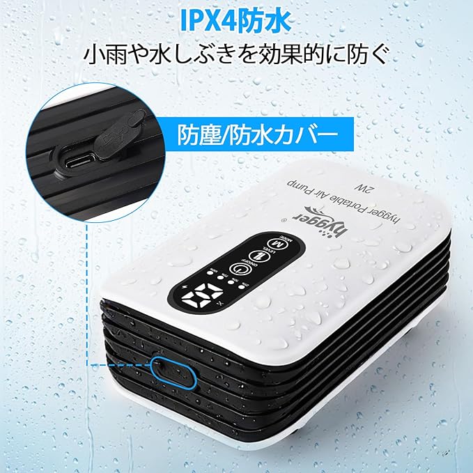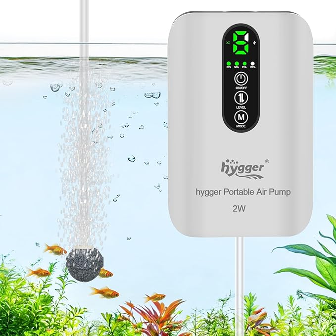 hygger エアーポンプ 釣り 充電式 水槽 最大1.5L/min 6段階風量 USB充電 AC/DC自動切替 35dB静音 ぶくぶく 防水 小型 軽量 金魚 メダカ ベタ