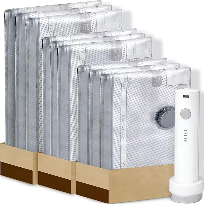 衣類圧縮袋 9枚入り 圧縮袋 旅行 圧縮袋 ポンプ セット 掃除機不要 充電式電動ポンプ 真空パック 収納袋 3サイズ 省スペース 収納 衣替え 引越し 毛布 洋服 防水 防カビ 高耐久 再利用可能