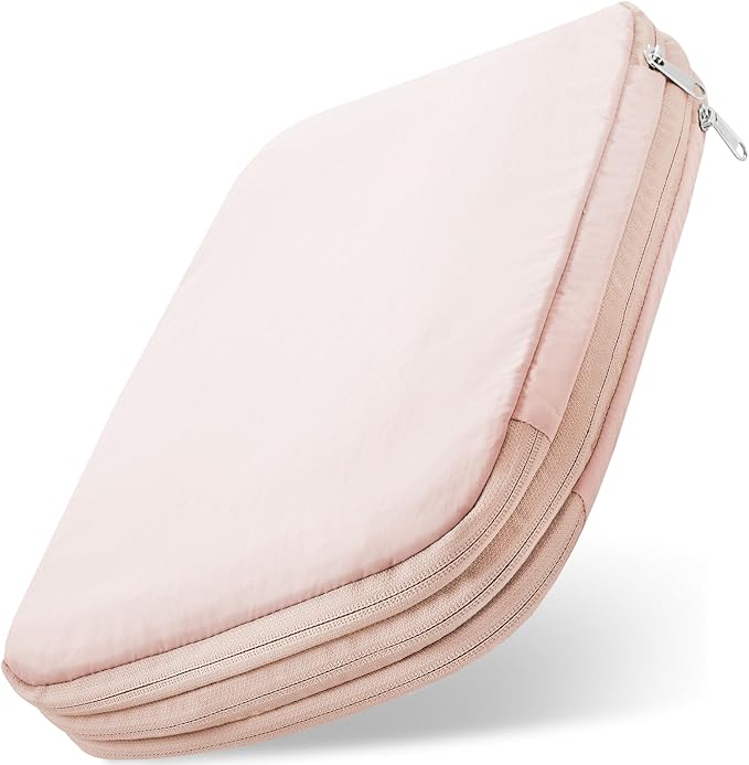 トラベルポーチ 圧縮 【YKKファスナーで、撥水&耐久性のある生地】 旅行 便利グッズ 衣類 衣類圧縮袋 旅行用圧縮袋 圧縮ポーチ 圧縮バッグ 2WAY くすみカラー (Shell Pink, M)