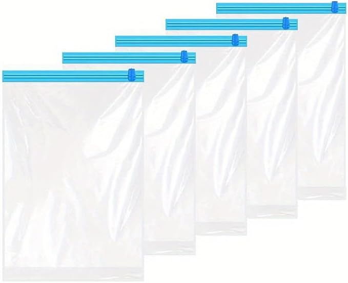 圧縮袋 旅行 衣類圧縮袋 40*60cm(5枚)約80%圧縮 真空あっしゅく袋 ブルー 掃除機不要 手巻き 洋服 ダウン アウター 防カビ 防虫 衣替え 収納 トラベル 出張 引っ越し 旅行便利グッズ 再利用可能