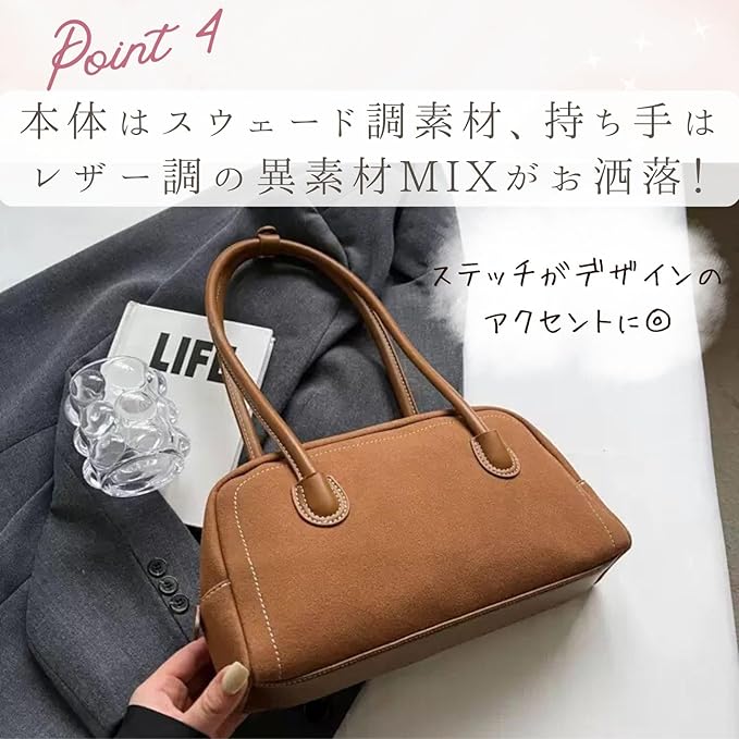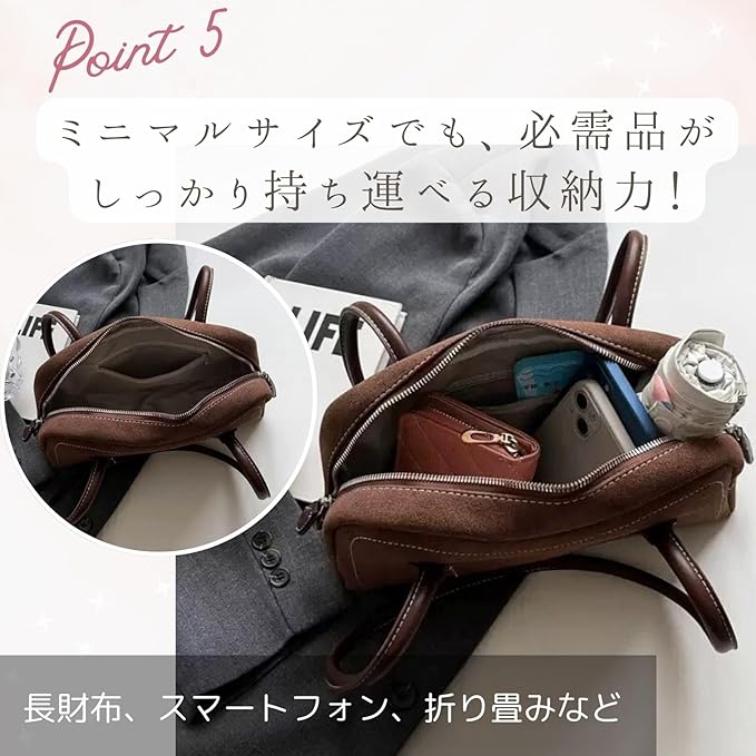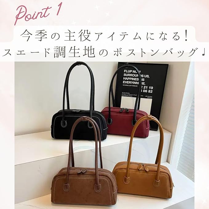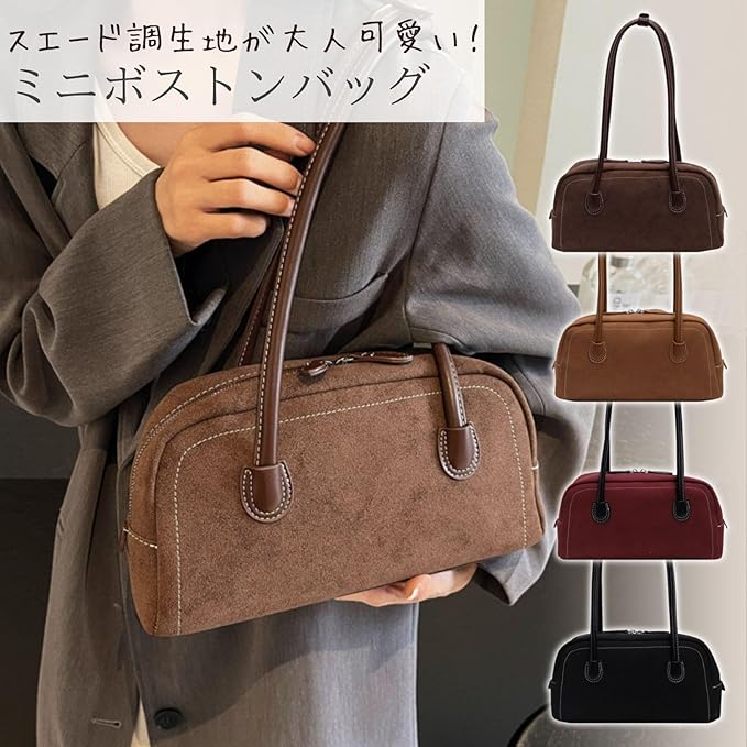 [ハルジオ] 横長バッグ スエード調 ミニボストンバッグ 秋 冬 バッグ レディース トートバッグ ハンドバッグ 肩掛け ショルダー 小さめ 黒 赤 茶色 ミニ ボストン 横長ボストン 幅広 トレンド おしゃれ かわいい バック カバン 人気