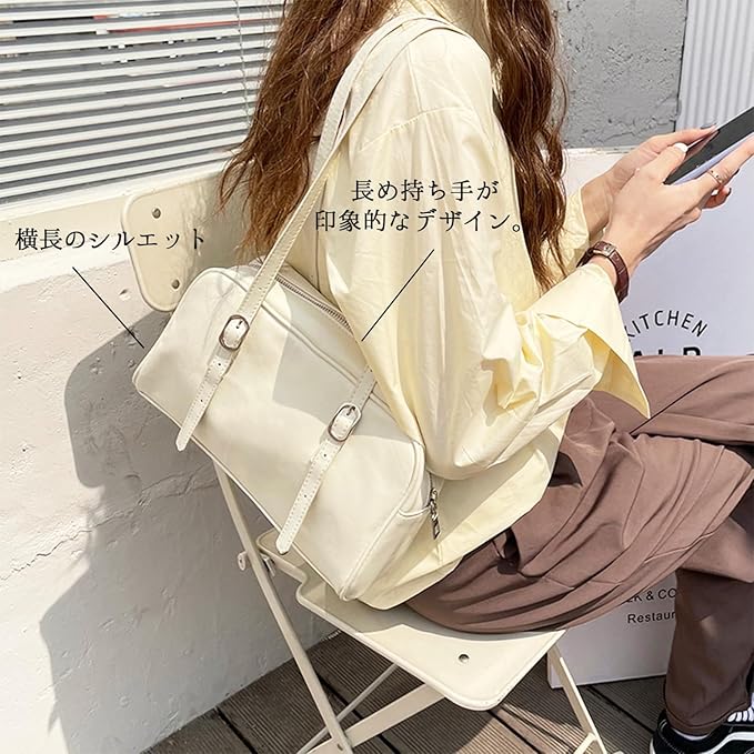 長めの手持ちで肩に掛けやすく、軽量なので長時間の使用でも疲れにくい設計です。