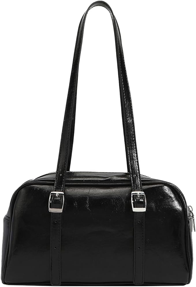[Lapimou] 横長バッグ ボストンバッグ ハンドバッグ 肩掛けバッグ ショルダーバッグ ワンショルダーバッグ バッグ レディース 斜めがけ 横長 シルバー a4 大きめ 大容量 人気 トレンド おしゃれ かわいい パーティ (ブラック)