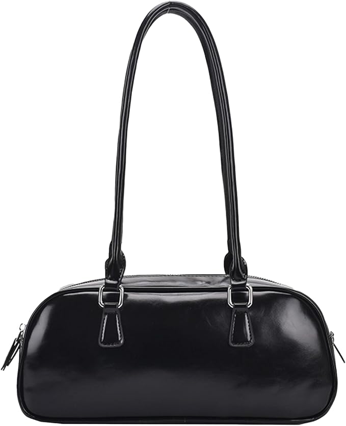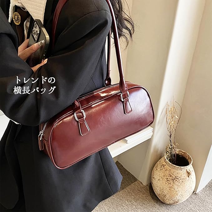 [Lapimou] 横長バッグ ボストンバッグ ボストン ハンドバッグ 肩掛けバッグ ショルダーバッグ バッグ レディース 横長 シルバー a4 大きめ 幅広 大容量 人気 トレンド おしゃれ かわいい (ブラック)