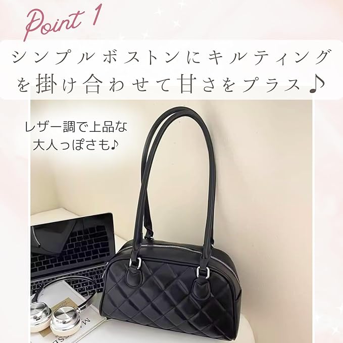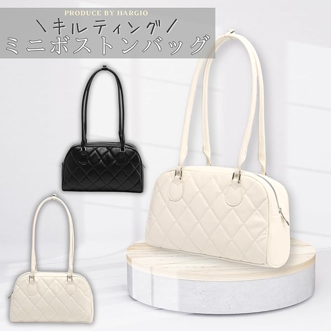 [ハルジオ] キルティングバッグ ミニボストン トートバッグ トート 肩掛け ショルダー ミニバッグ ミニボストンバッグ レディース キルティング 小さめ 横長 ミニ ボストン バック 白 黒 トレンド y2k かばん 鞄 おしゃれ 可愛い 人気