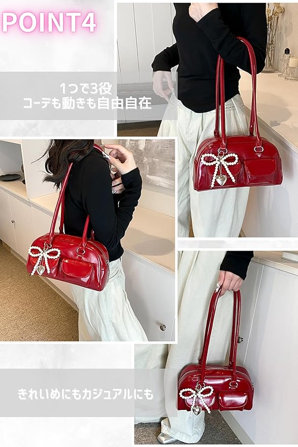 [ModaFusion] 横長バッグ リボンバッグ 蝶結び 手持ち 韓国 ボストン ハンドバッグ 肩掛け ショルダーバッグ 大きめ レディース ミニボストン 可愛い 2way 通勤 通学 旅行