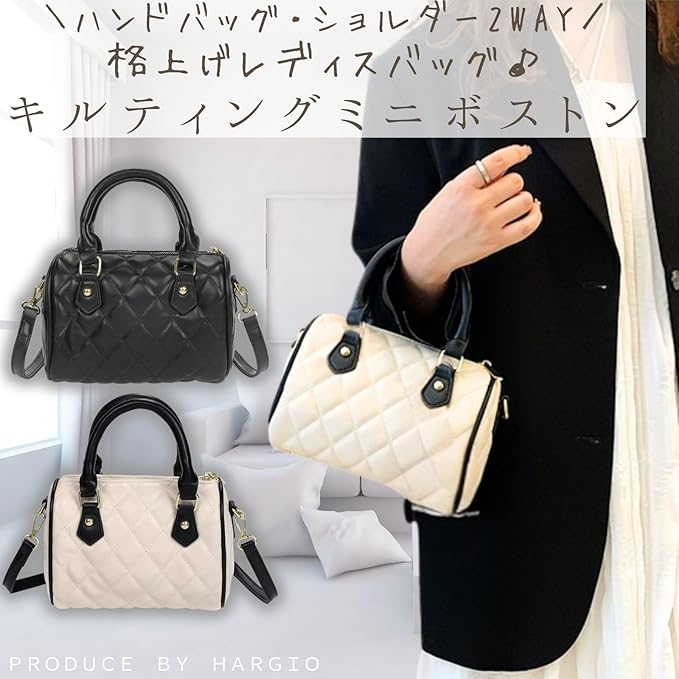 [ハルジオ] キルティングバッグ ミニボストンバッグ ショルダー ボストン 横長バッグ レディース ショルダーバッグ ハンドバッグ 2WAY 小さめ 横長 肩掛け 斜めがけ 横長ボストン 幅広 トレンド バック 鞄 おしゃれ 可愛い 人気