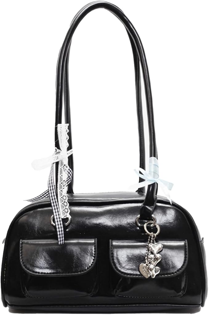 [Lapimou] 横長バッグ ボストンバッグ ボストン ハンドバッグ 肩掛けバッグ ショルダーバッグ バッグ レディース 横長 リボン 蝶結び シルバー a4 大きめ 幅広 大容量 人気 トレンド おしゃれ かわいい