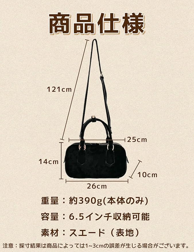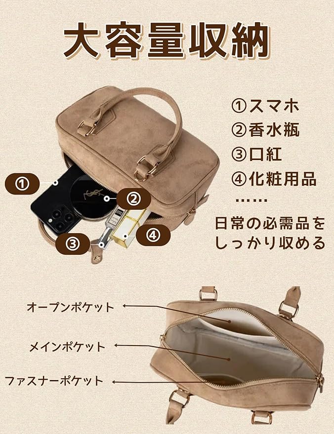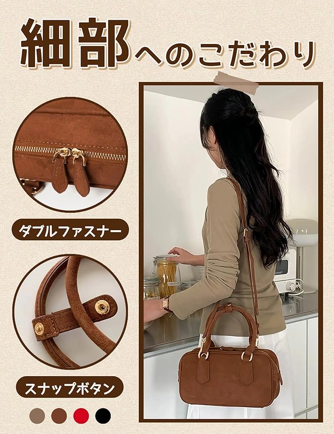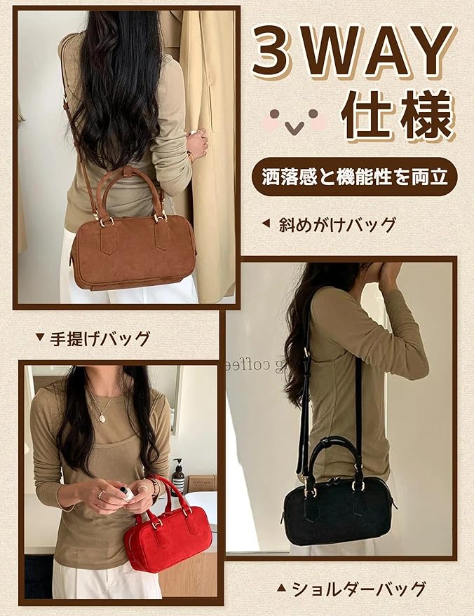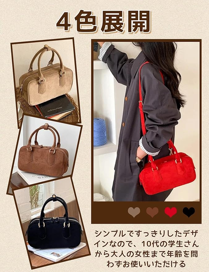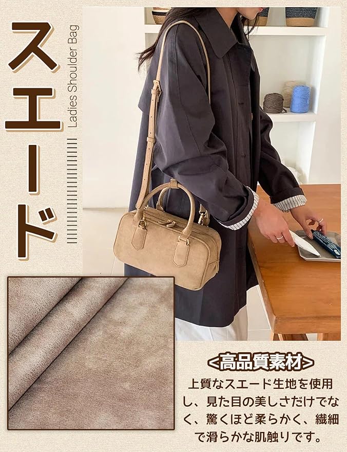 [HIKKER-LINK] ハンドバッグ レディース ショルダーバッグ スエード: 横長ボストン 肩掛け 斜め掛け スクエア型 可愛い シンプル 高見え 幅広 軽量 コンパクト 通勤 通学 普段使い ショッピング 入学式 プレゼント JK 女性 彼女 学生