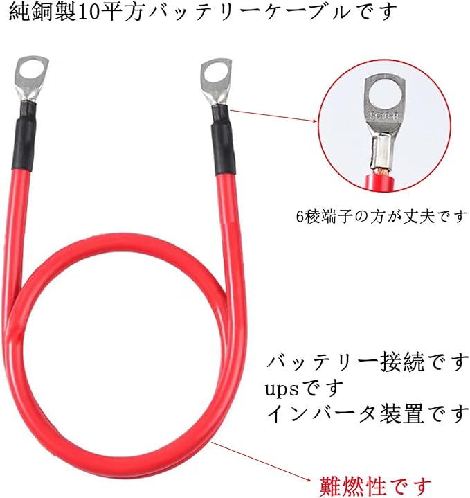 包装内容:2本 M8 インターナショナル純銅 長さ20cm 10mm 車のバッテリーの正と負のパラレル ケーブル、発電機機械、インバーター接続ケーブル