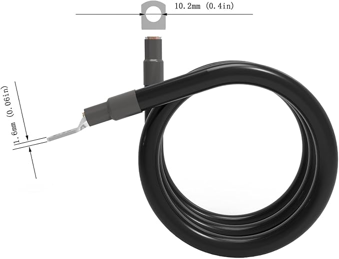 錫メッキ端子で、大電流を流しやすく、端子は強化油圧でできており、脱落しにくい。両端には金属リング状端子が付いており、バッテリー端子に簡単に接続することができます。両端に10mmの金属リング端子が付いた自動バッテリーケーブル銅。