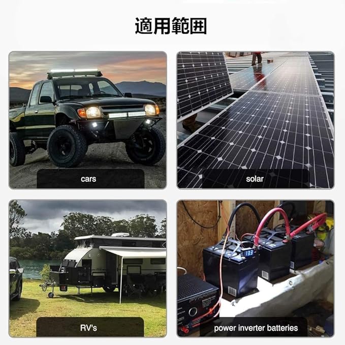 【適用範囲】インバーターケーブルは、自動車、トラック、マリンボート、ソーラー、RV、トレーラー、ゴルフカー、オートバイ、芝刈り機などの電力用途によく使用されます。