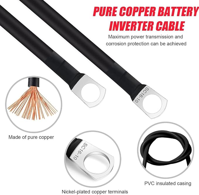 【商品内容】50cm 16mm バッテリーインバーターケーブルには、正(赤)と負(黒)のバッテリーケーブルのセットが含まれています。