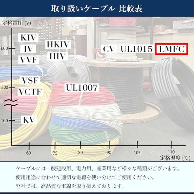 すずめっき軟銅より線 電線:LMFC サイズ:22sq 定格電圧:600V 定格温度:110℃