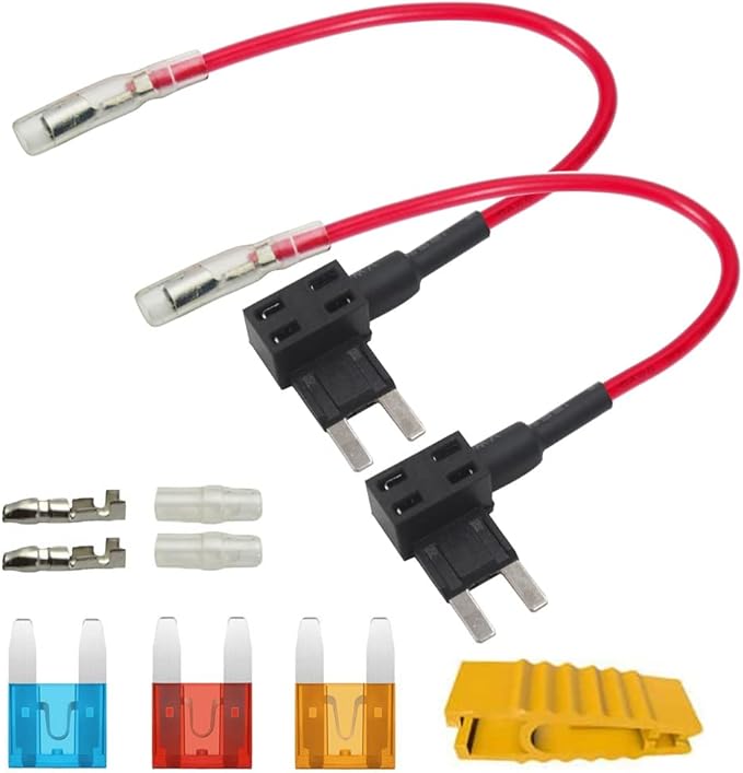 2個12V-24V車平型ヒューズホルダー 配線追加 電源取り出し 小型 ATMすぐ使える3個(5A/10A/15A)無料ヒューズ付き