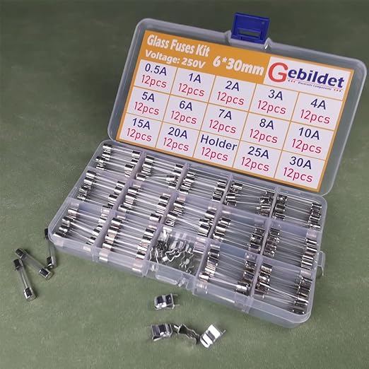 168個 6 * 30mm ガラス管 ヒューズ (0.5A/1A/2A/3A/4A/5A/6A/7A/8A/10A/15A/20A/25A/30A のヒューズを各12個づつの)+12個のヒューズホルダー