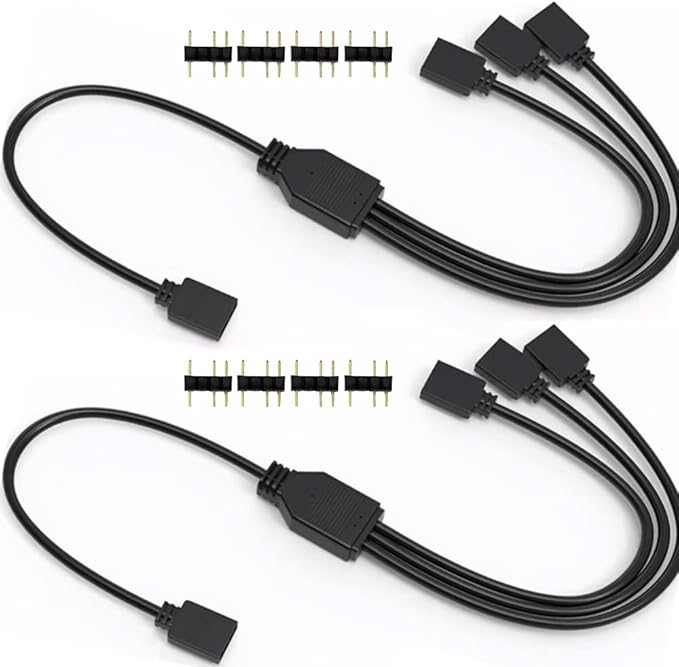 パッケージ内容:1対3 ARGBスプリッターケーブル(5V 3ピン)2本、3ピンオス型コネクタ10個。全長:11.8インチ。
