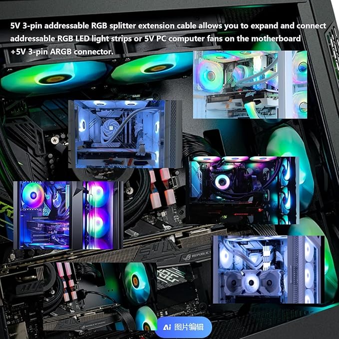 機能:これらの1対3 5V 3ピンアドレサブルRGBスプリッター延長ケーブルを使用すると、マザーボードの+5V 3ピンARGBヘッダーにアドレサブルRGB LEDストリップまたは5V PCコンピューターファンを延長接続できます。