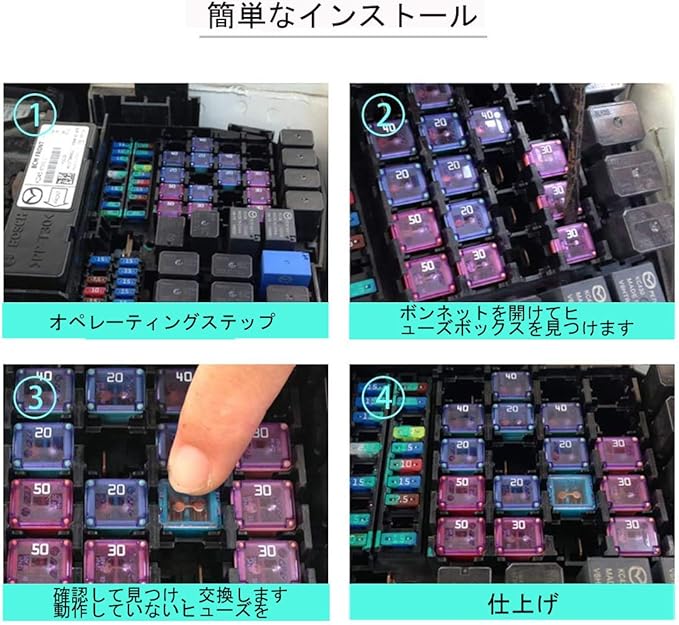 車、SUV、キャンピングカー、トラベルトレーラー、ゴルフカー、トラック、その他の車両など、ほとんどの電気機器や車両のアイデア。車に最適で不可欠なツール。購入する前に、自動車のヒューズの適切なサイズを自分で確認することを強くお勧めします。