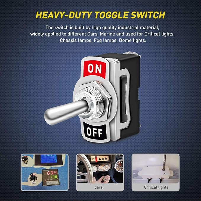 8個 車トグルスイッチ10A/12VDC, 6A/24VDC2ピン SPST ON/OFFロッカートグルスイッチ、自動車オートトラックボート用