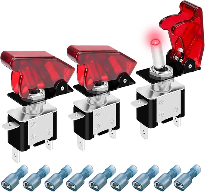 ミサイルスイッチ 12V-24V 20A 3個セット LED搭載 3極タイプ ON-OFF (赤い)