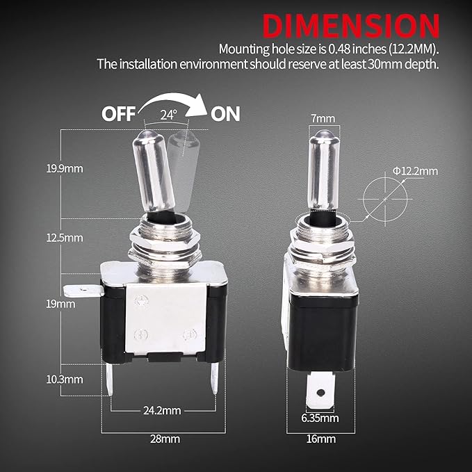 ✪コネクタタイプ:SPST、3端子ピンON / OFF、取付穴径:12mm、