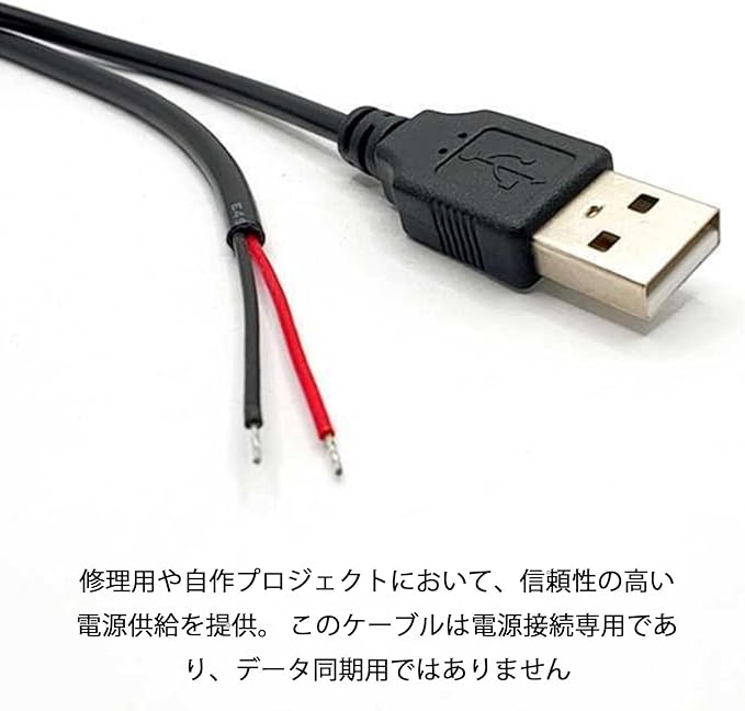 【信頼性のある電源供給】修理用や自作プロジェクトにおいて、信頼性の高い電源供給を提供。 このケーブルは電源接続専用であり、データ同期用ではありません。 この USB ケーブルは急速充電アダプターをサポートできません