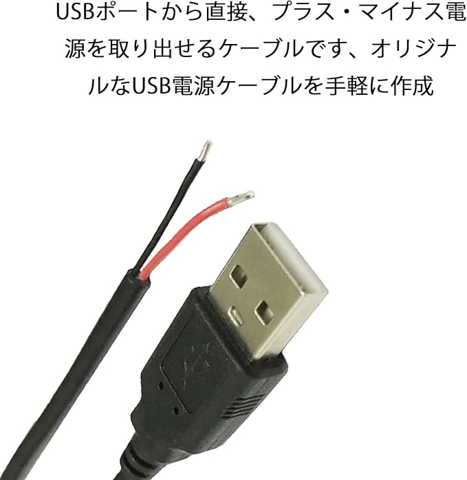 【DIYキット】 ユーザーが自分で組み立て、USBポートから直接、プラス・マイナス電源を取り出せるケーブルです、オリジナルなUSB電源ケーブルを手軽に作成。