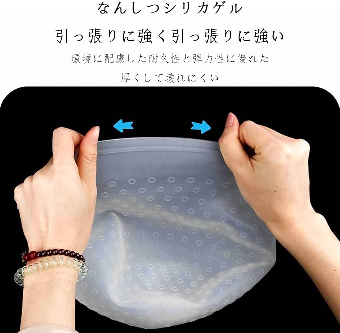 【男女兼用】柔軟性と耐久性のあるシリカゲル素材を採用し、しかも伸縮性があり、男女を問わず、頭周りを問わず使用でき、材質が丈夫で、洗って繰り返し使用することができる。