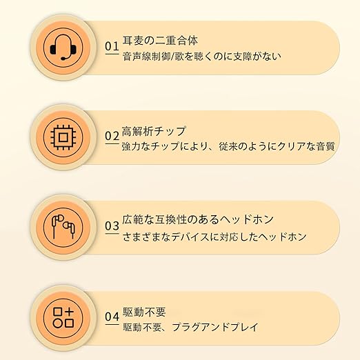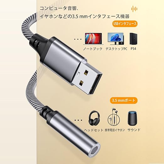 【互換性】本製品はノートパソコン、デスクトップパソコン、PSPをゲーム機などの設備に適用し、単孔イヤホン、スマートフォンイヤホン、スピーカーなどの3.5 mm設備にも適用する。