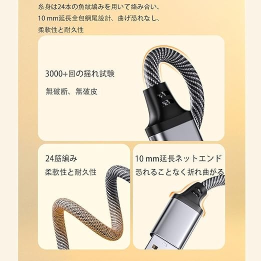 【耐久性】継ぎ手はアルミニウム合金ハウジングを採用し、金メッキ接点で作られ、3000回の継ぎ手抜き差し試験、10000回のUSB継ぎ手抜き差し試験、壊れにくく、長く新しいように使用する。
