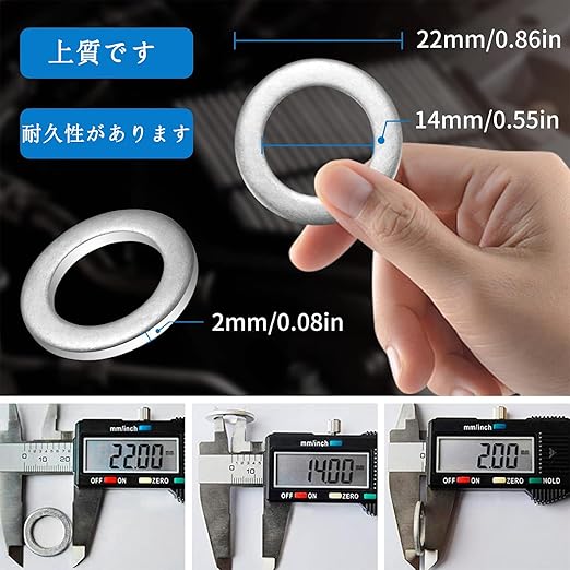 サイズ、外径22mm、内径14mm、厚さ2mm 1パックあたり20枚のオイル栓スペーサーを備えており、オイル交換を何度も行うことができます。必要なときに、スペーサーがなくなる心配はありません。将来のメンテナンスに備えています。