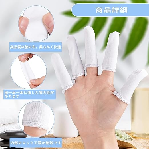 指カバーはストレッチコットンを採用し、通気性、滑り止め抜群です。手湿疹指コットは装着しやすく、指に優しくフィットし、作業時に落ちにくく、使いやすい。