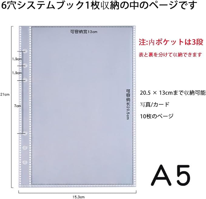 A5トレカ ファイル カードファイル 6穴 1ポケット 10枚入 クリアファイル 名刺 銀行カード 写真収納 全透明 両面 リフィル フォトケース カードシート 大容量