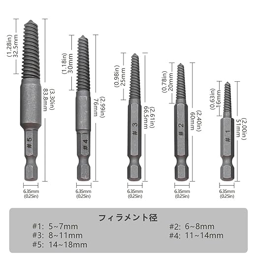 材質:高品質スチールHSS製。 耐久性と柔軟性のため、最高の強度を得るために、最大62〜65hrcを利用することができ、損傷したネジやボルトを取り外すのは簡単です。