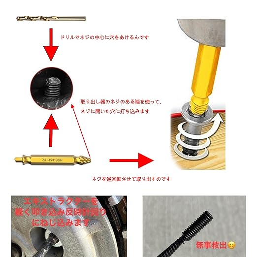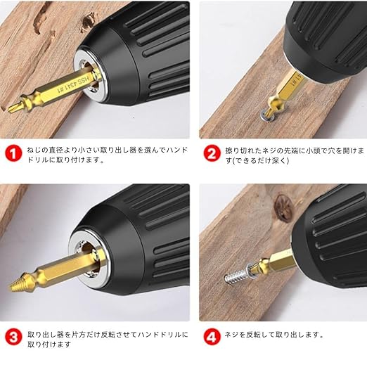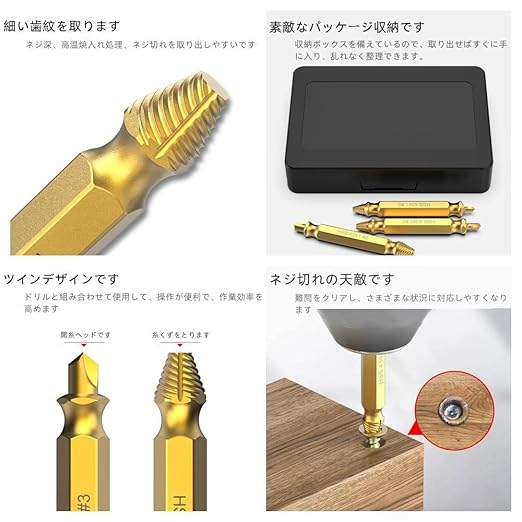 (応用範囲)固定ネジ、特殊なネジヘッド、ボルトなど各種ネジを簡単に取り出せます。軽金属、木材、アルミ板、鉄板など被削材のドリル、タップ加工に適しています。すべての家主、木工工、机械工人、芸術家、愛好家などに適します。家庭や職場の家具などを解体するとき、愛車やバイクなどを整備するときなどに使えます!