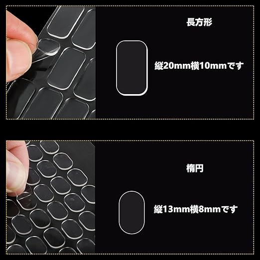 パッケージ内容:剥がせる両面テープ 楕円形、(13mm 幅8mm 厚さ1mm) 180枚 長方形、(10*20*1mm) 96枚