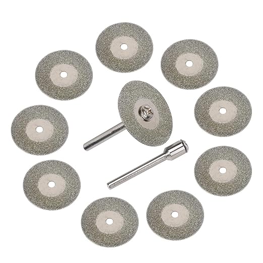 ミニダイヤモンドカッター ダイヤモンドカッティングディスク ダイヤモンドビットブレードセット ミニルーター/ルーター/リューター用 シルバー (直径25mm 10枚入り 3mm軸2本付), GD-109