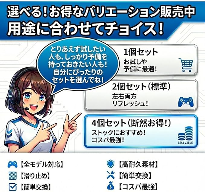 スティックの汚れや破れによる交換にもぴったりで、操作性と快適性をしっかりサポートします。