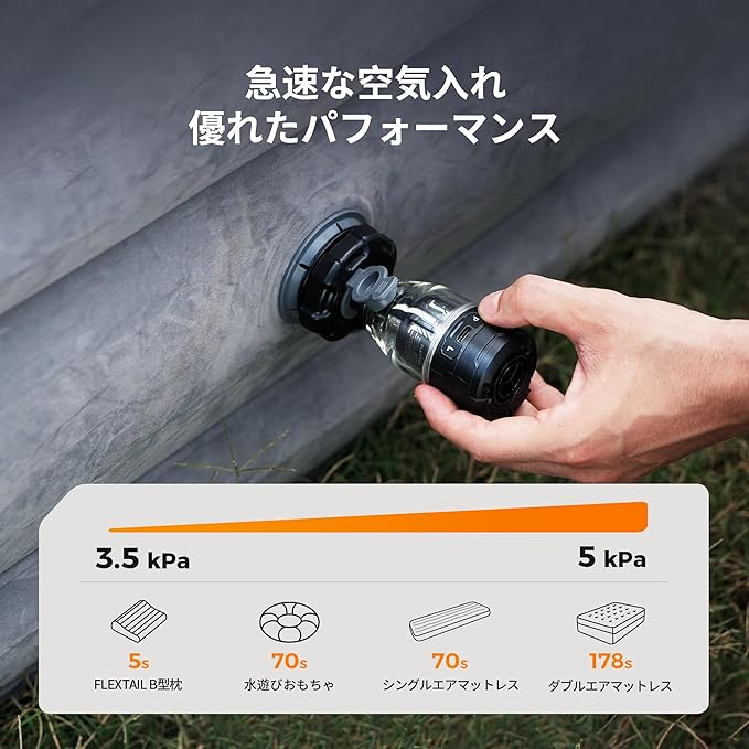 FLEXTAILGEAR MAX PUMP 3 携帯式エアーポンプ USB充電式 最軽量ポンプ 5kPa 照明ライト付き 携帯型 テントライト 懐中電灯 エアーポンプ 空気入れ・空気抜く 電動ポンプエアーベットなど対応 便利