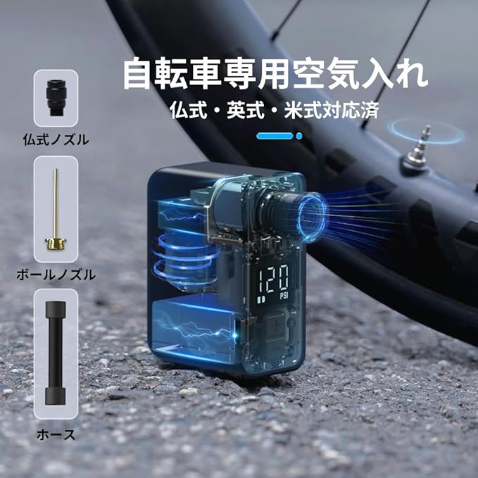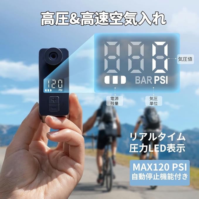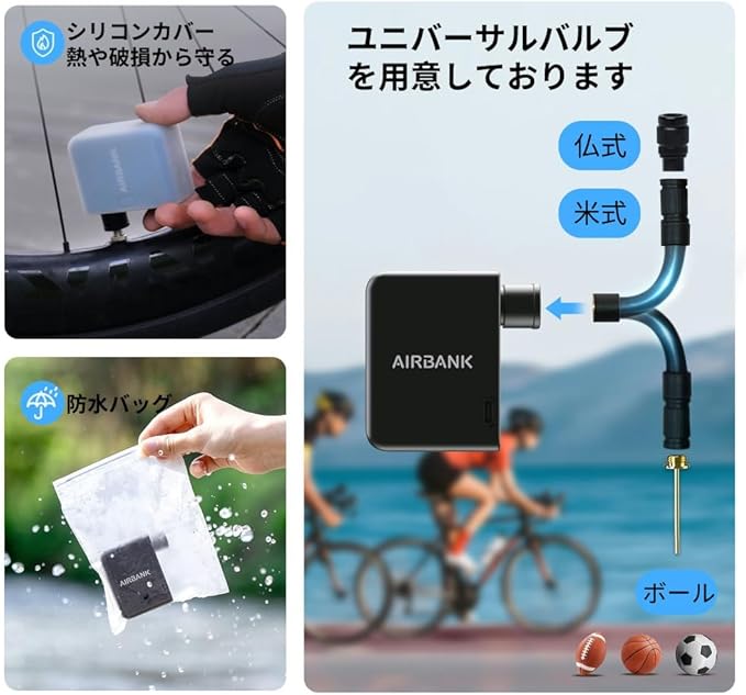 AIRBANK 小型自転車 空気入れ Pocket PRO 120PSI Type-C充電式 自転車用空気入れ カバー付き 124g軽量 ミニフロアポンプ 携帯ポンプ ロードバイク/クロスバイク/ママチャリ用 仏式 米式 バルブ対応