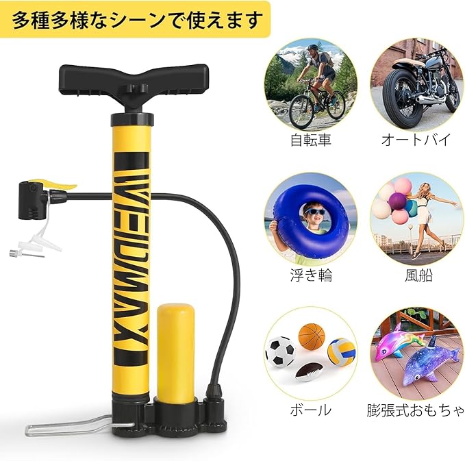 【幅広い用途】 -このフロアポンプは、普通な単一バイブ付けポンプおよび互換性があります。自転車、電気自動車、オートバイ、ロードバイク、浮き輪、ボールおよび任意の膨張式おもちゃおもちゃに使えます。