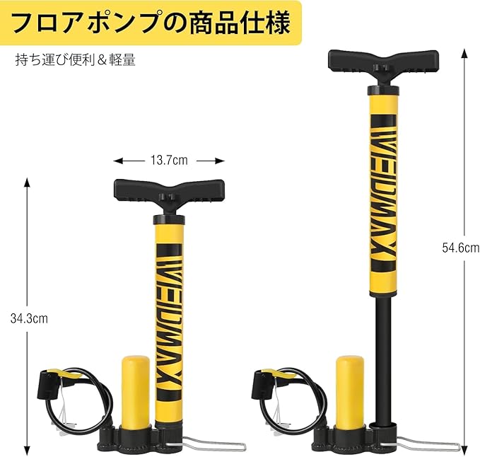 【軽量で持ち運び便利】 -WEIDMAXの自転車空気入れはシームレス鋼製で、見た目が美しいだけでなく、耐食性にも優れています。360gだけで非常に軽量です。毎日の持ち運びに最適です。