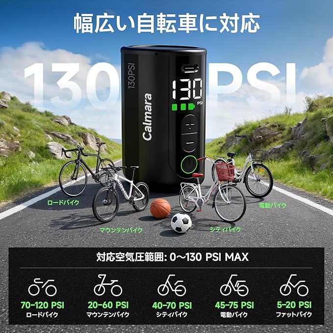 軽量 電動空気入れ 130 PSI 自転車 仏式/米式対応 ミニ 空気入れ 高精度リアルタイム空気圧 自動停止 Type-C充電 携帯エアーポンプ ロードバイク・クロスバイク・バイクなど 防水収納袋付き MY20