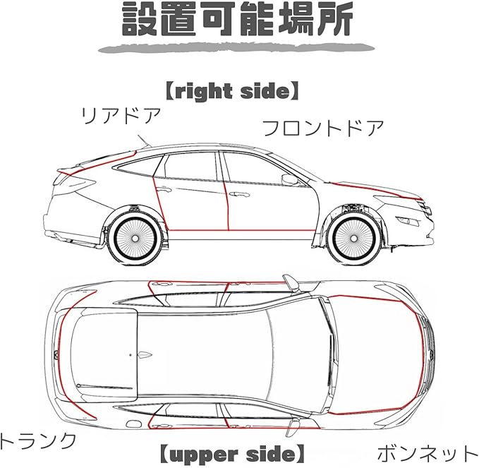 簡単設置&長持ち:ハンマーでドアフレームに簡単に取り付けられ、内側の返しにより一度設置すればしっかり固定。外れにくく、耐久性も抜群です。柔軟性が高く、曲線部分にもスムーズにフィットし、あらゆる車種に対応します。